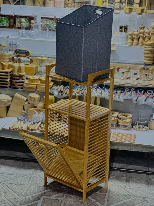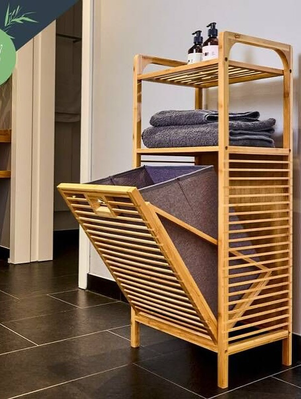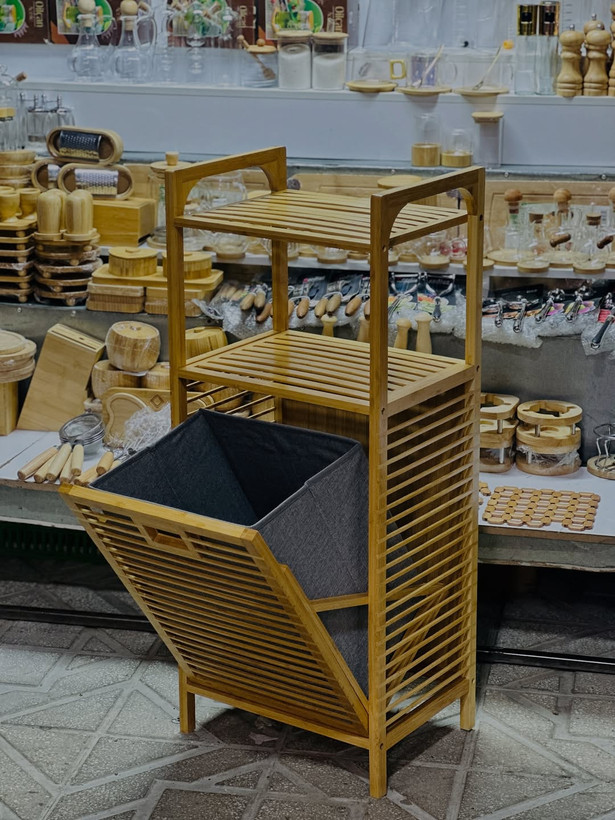 استند بسیار زیبای لاندری باکس بامبو یک کار فوق العاده شیک و خاص مخصوص بانوان خوش سلیقه لاندری بهترین گزینه برای نظم دهی کنار لباسشویی.