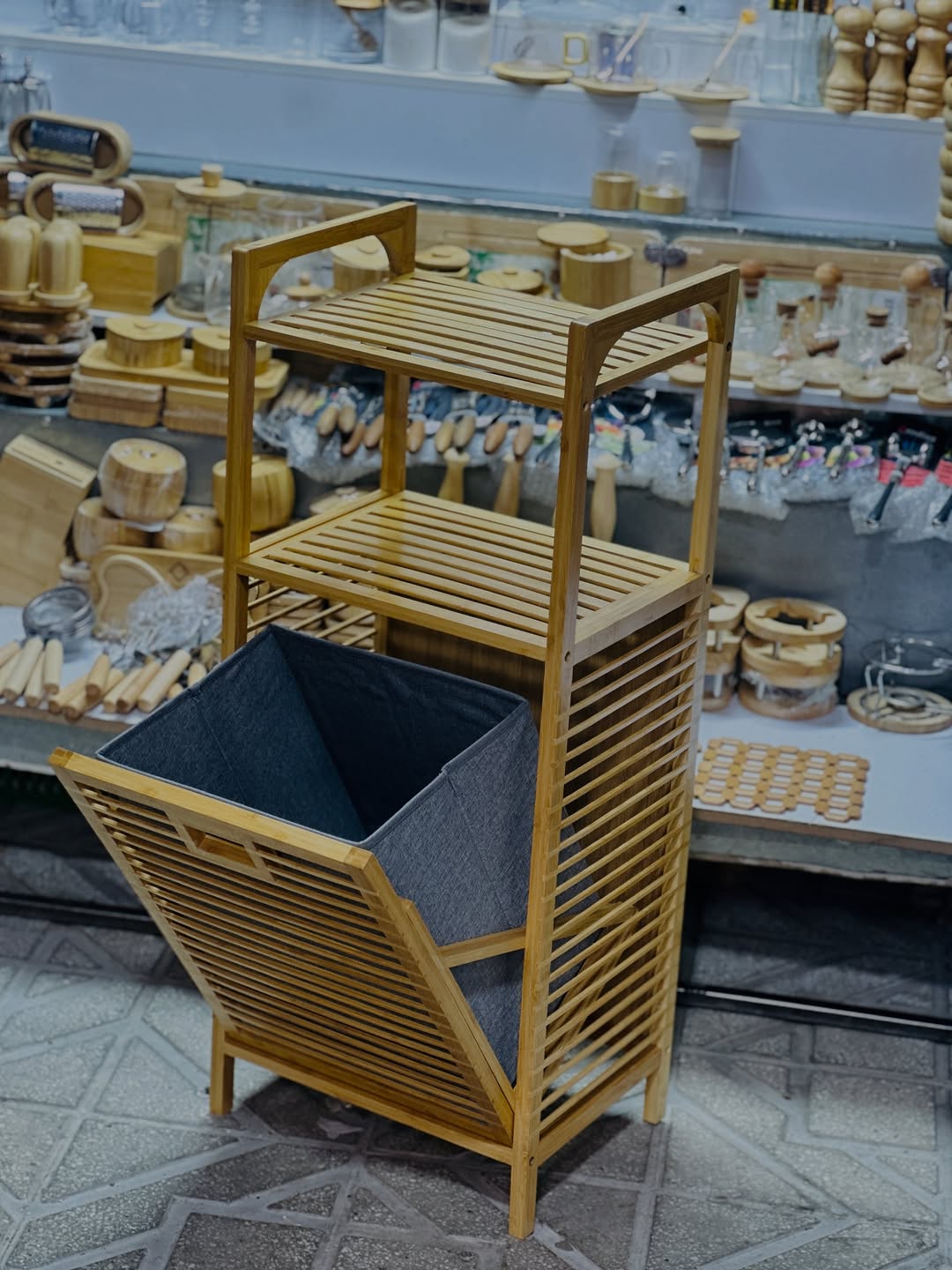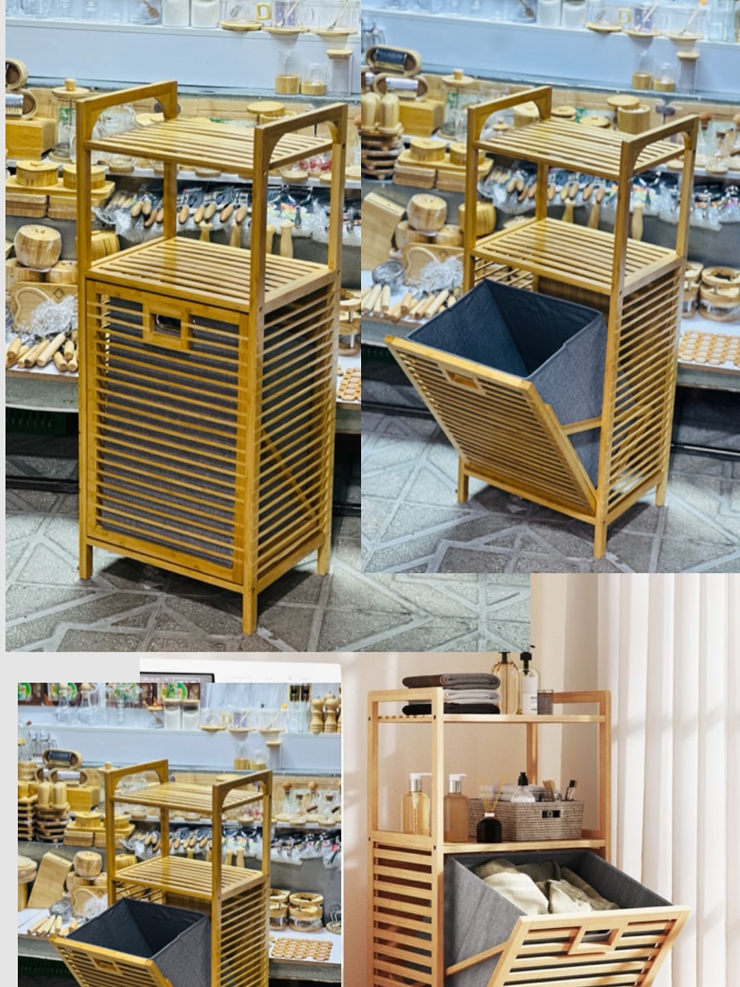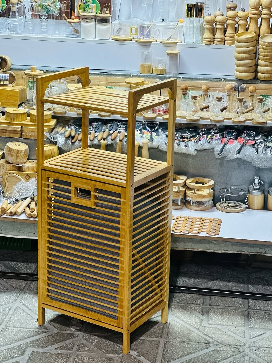 استند بسیار زیبای لاندری باکس بامبو یک کار فوق العاده شیک و خاص مخصوص بانوان خوش سلیقه لاندری بهترین گزینه برای نظم دهی کنار لباسشویی.