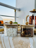 قندان مدل مربع یک محصول کاملاً ترند و خاص برای تکمیل سینی چای یا میز صبحانه شماست. این قندان با ترکیب دو عنصر پیرکس اصلی (شفافیت و کیفیت بالا) و درب بامبو (گرما و حس طبیعت)، زیبایی مینیمال و مدرن را به آشپزخانه شما میآورد.
